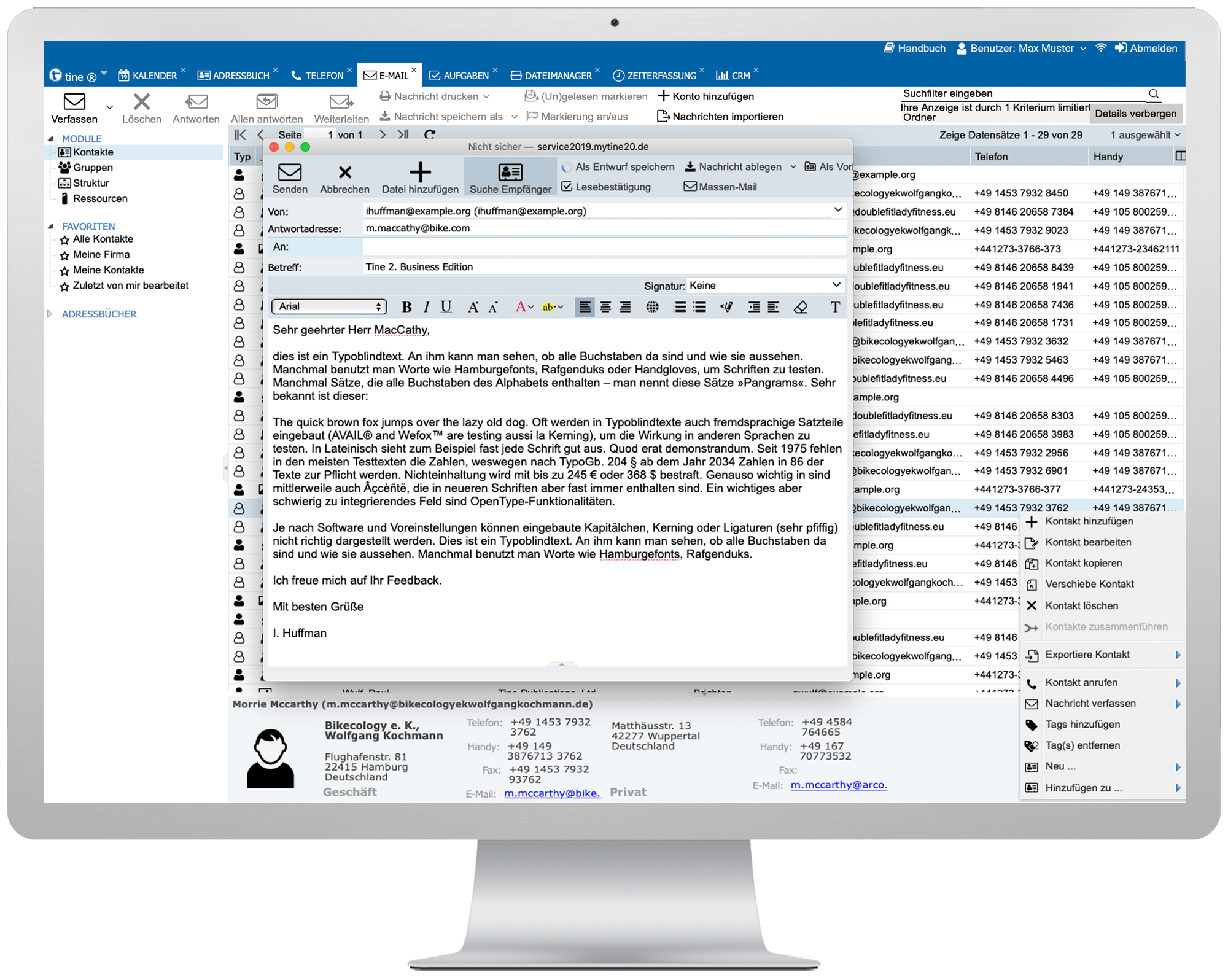 Sie sehen: Mit dem integrierten E-Mail-Client bietet Ihnen tine alle gängigen Funktionen für Ihre geschäftliche Kommunikation – sicher, professionell und anwenderfreundlich.
