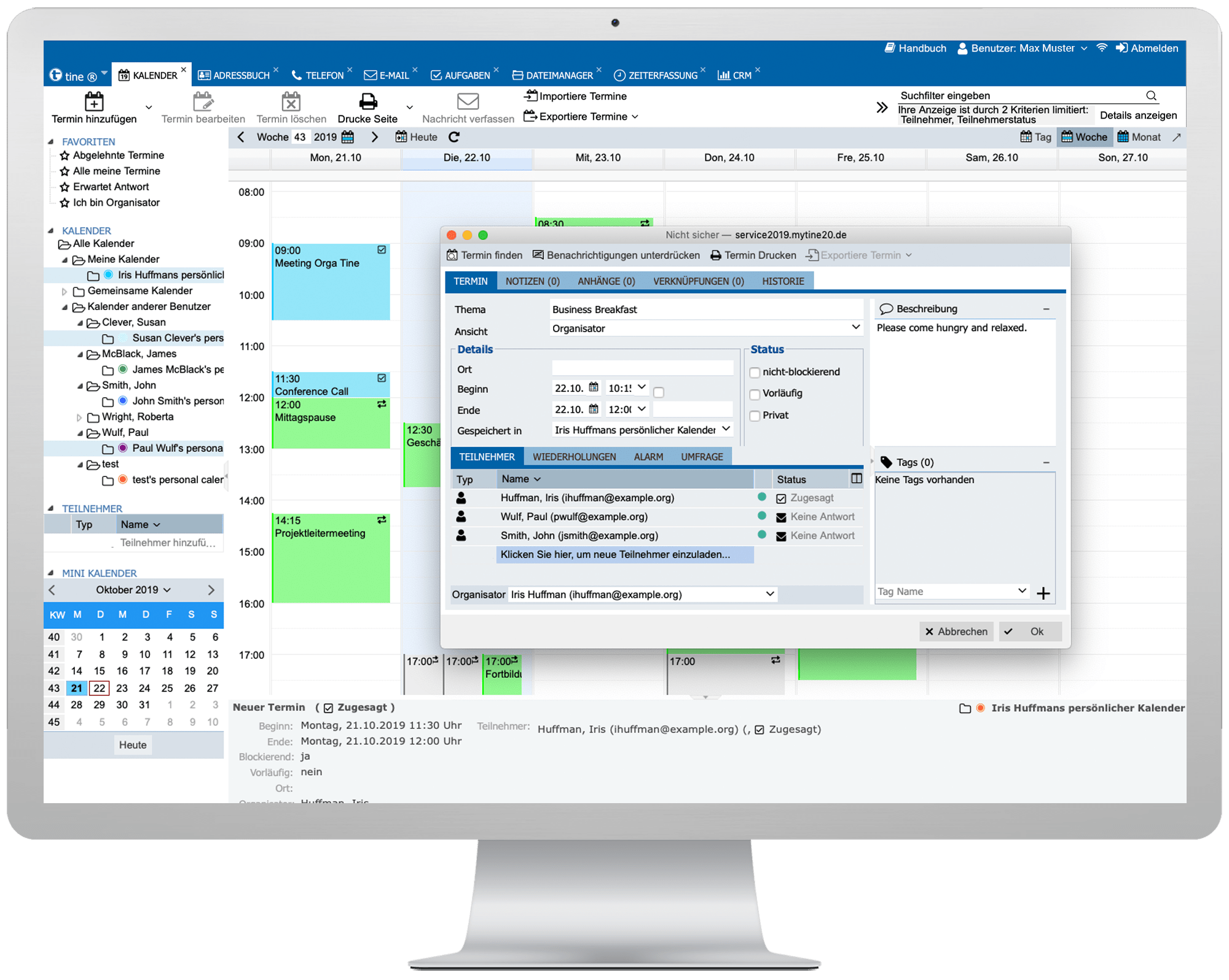 Mit tine können Sie all dieses bereits beim Anlegen des Termins berücksichtigen.